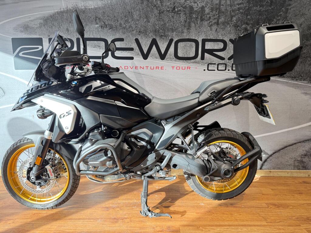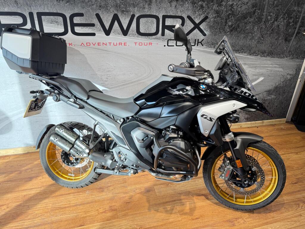 STUNNING! This BMW R1300 GS Triple Black edition has hardly seen the open road with just 1800 miles from new! this fully spec'd bike comes with -, LED Fog lights, Heated Seats Front and Rear, Alarm, Top case Carrier Gold Spoke Wheels, ABS, ASC, DTC, ESA, Hand protection, Heated grips, Heated seats, Keyless Ride, Main stand, Seat heating, Tyre Pressure Control, Electric Windshield, RIDER MODES, TFT Screen, SOS option, SAT NAV PREP. Plus loads more!