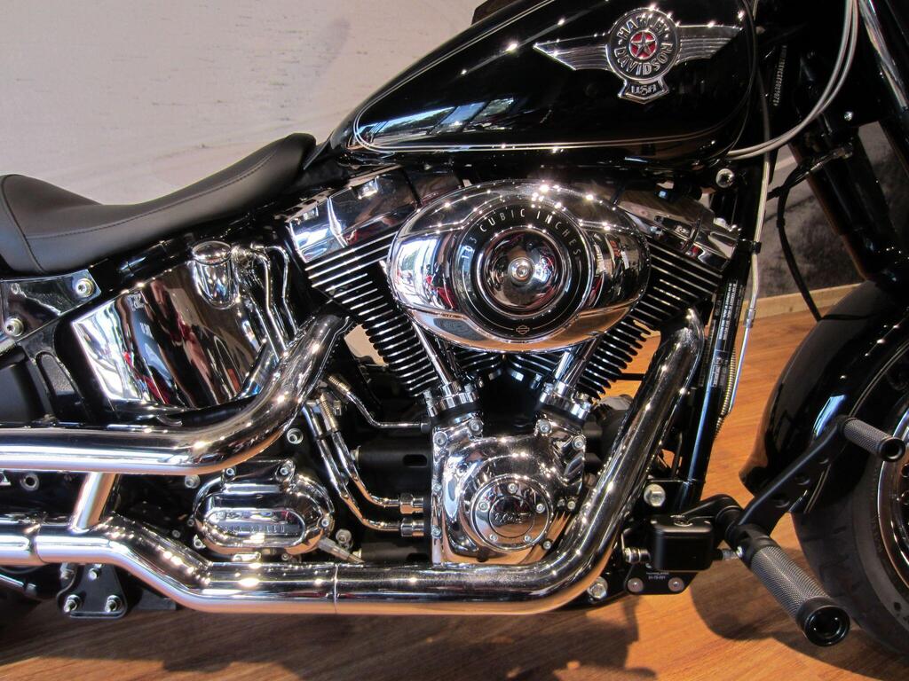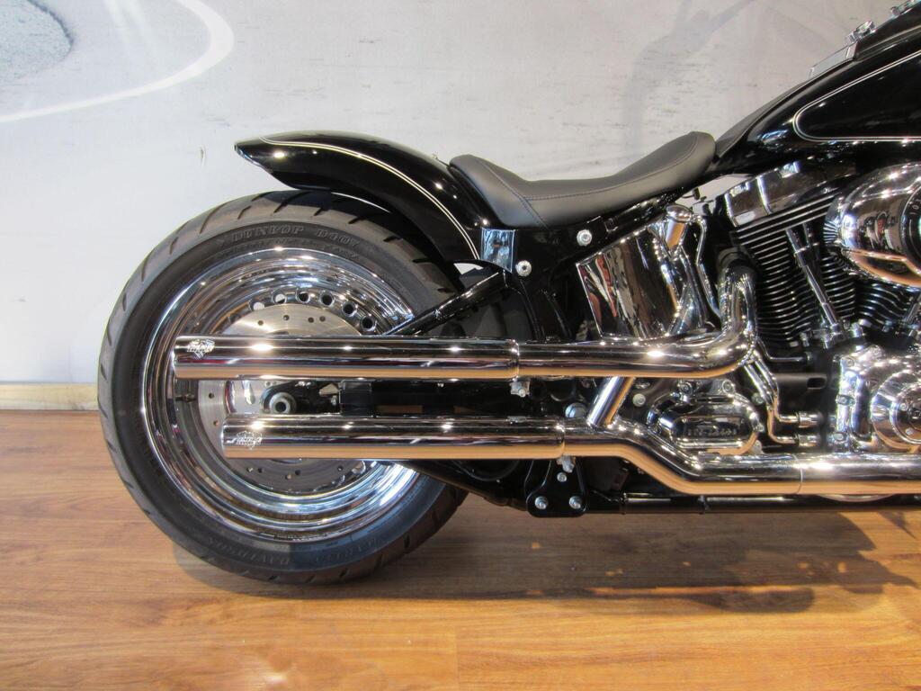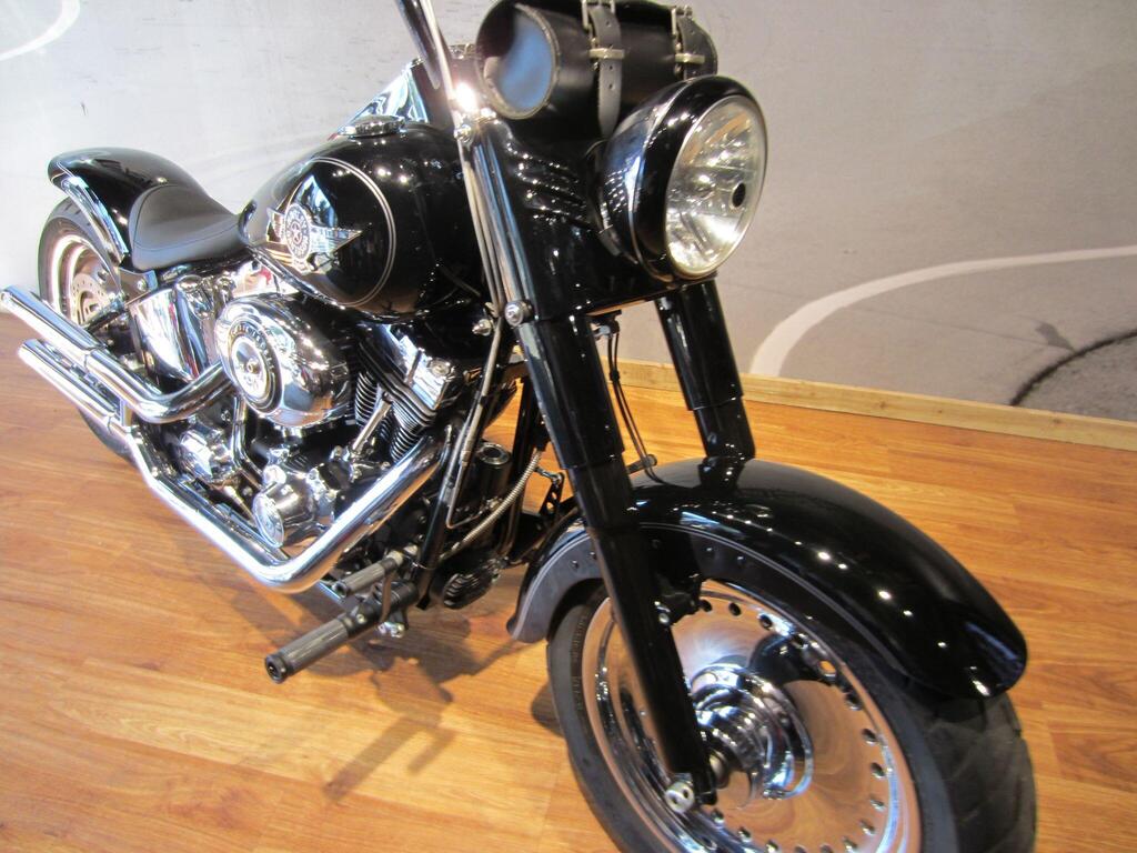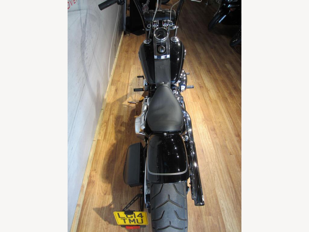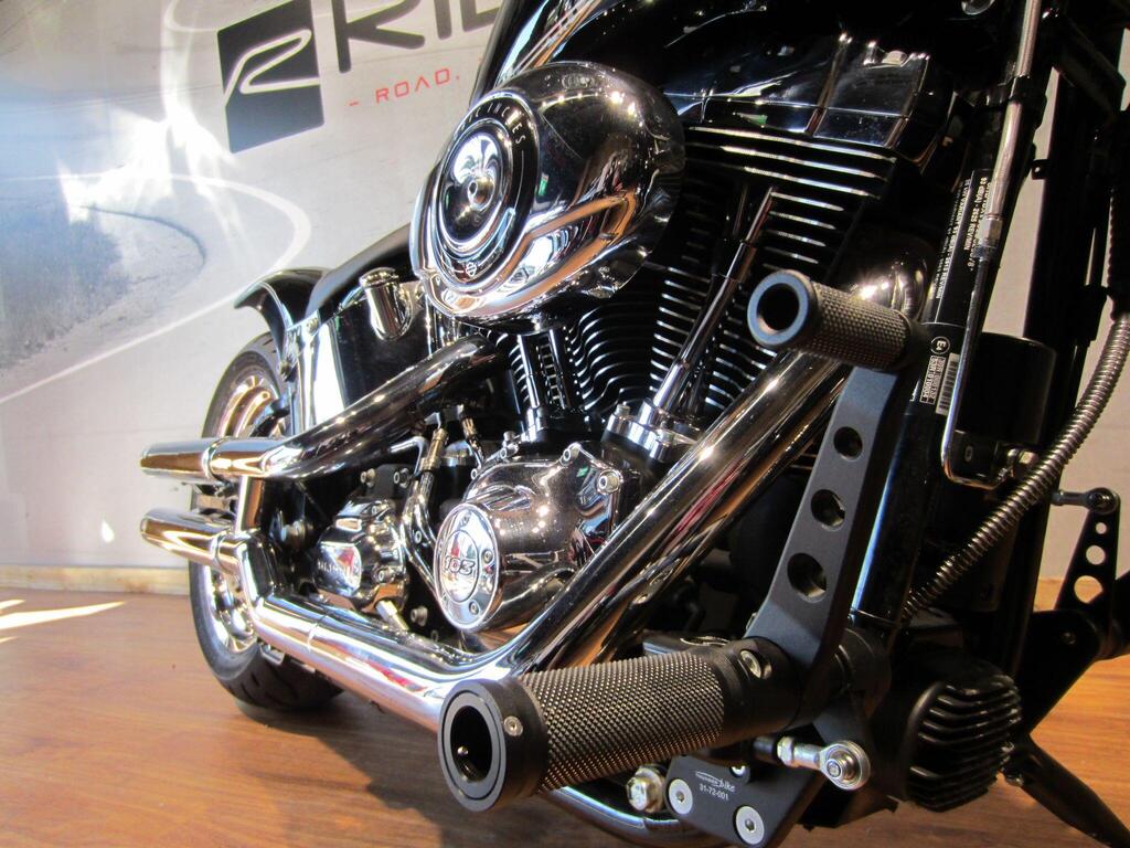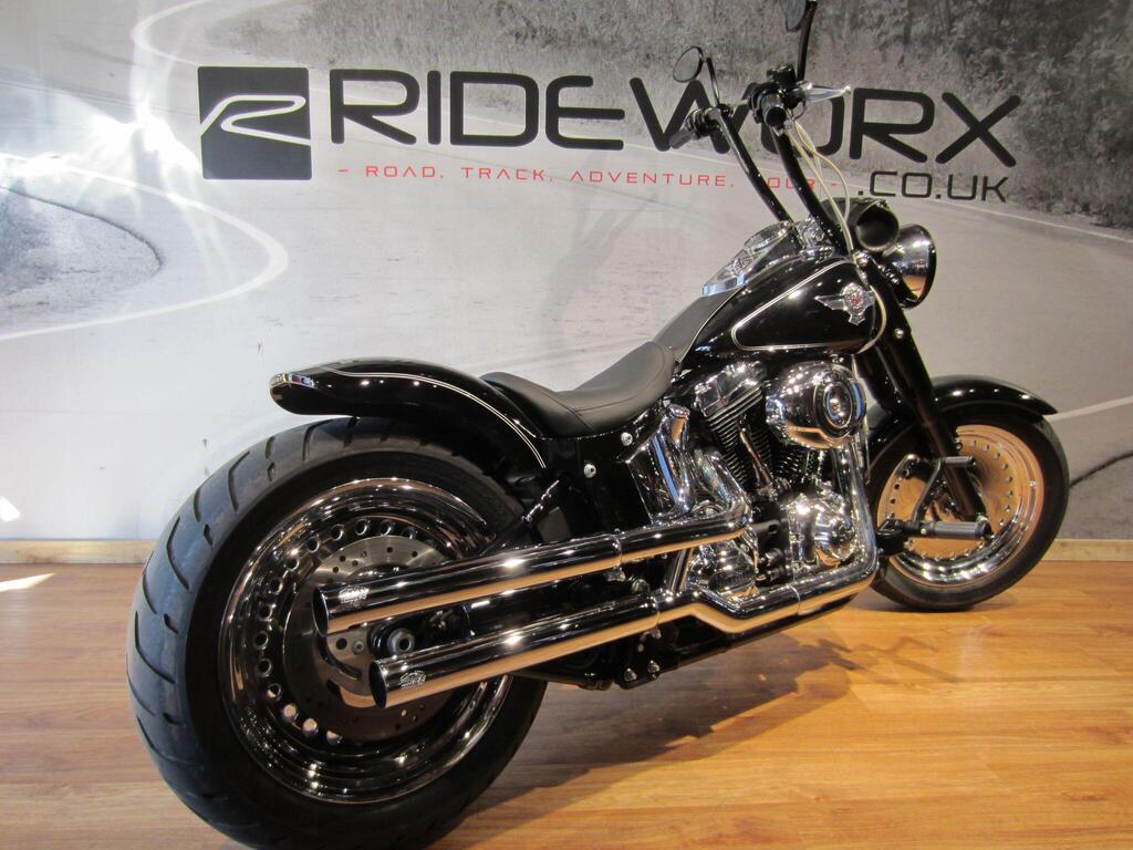 Super condition Harley Davidson Fat Boy Custom! 11000 miles with a full history and very tastefully customized! Great chrome work all round and front to back mods include - Tool/ roll bag above the headlight - Ape hanger bars that although they look high are surprisingly comfortable and really give the bike serious curb appeal! down the bike you will see a host of nice add-ons, forward controls fitted with foot pegs, toe pegs and then there's the stage 1 filter and V&H pipes that every Harley owner looks for! A solo seat and side bag finish off the mid section before getting to the custom rear end with integrated stop/tail and indicators, finished off with a nice side mount plate! all wrapped up lovely iconic black paint with tidy white pin stripe to highlight the bikes shape. Lovely bike that has been thoughtfully put together and customized to turn heads but at the same time still a pleasure a ride and cruise on! IN STOCK NOW! HPI checked and clear, PX welcome, FINANCE OPTIONS AVAILABLE. Please call us on 01189 780089 to discuss further.