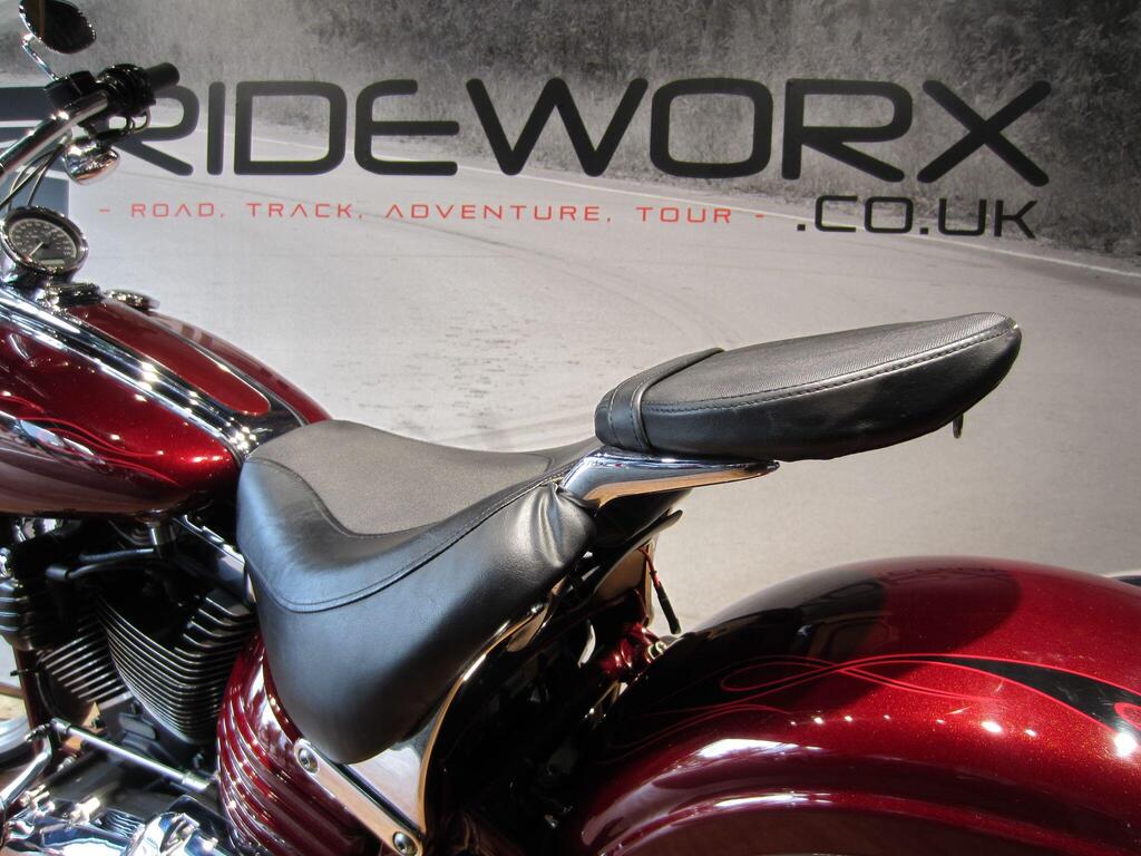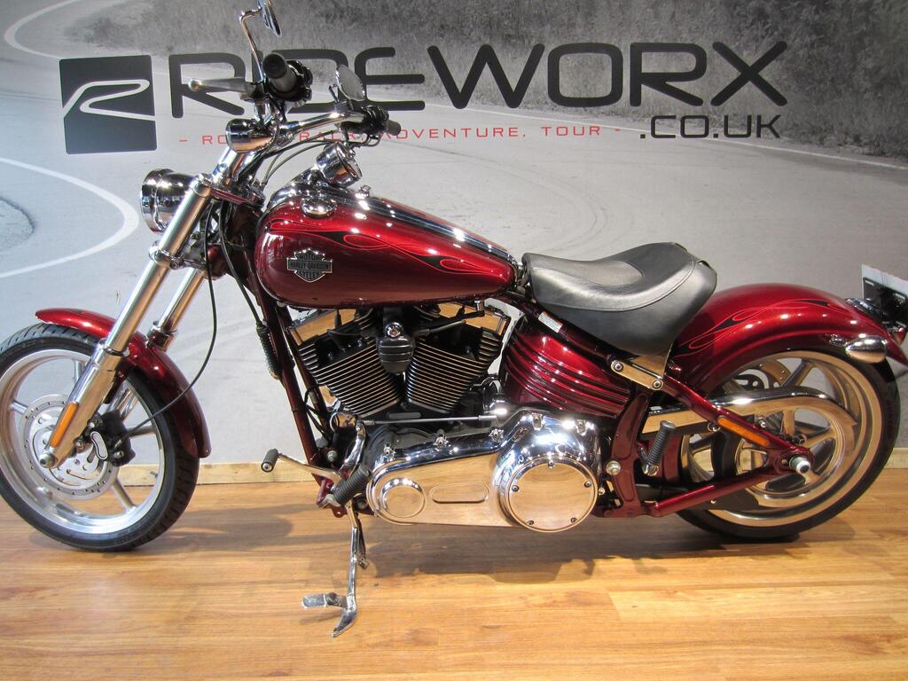 Just arrived! Truly stunning and immaculate condition ROCKER C Harley Davidson. Exceptionally well cared for its whole life and with just 4600 miles it is in A1 condition. Rare Ruby red with gold pearl factory paint, "hide away" pillion seat, V+H Pipes give it the sound you know and love! and an upgraded LED headlamp has been fitted. The bike wants for nothing and will grace any garage or living room for that matter! The bike has arrived in our stock, so if cant wait, get down to our Wokingham showroom before its gone! for further information please call 01189 780089