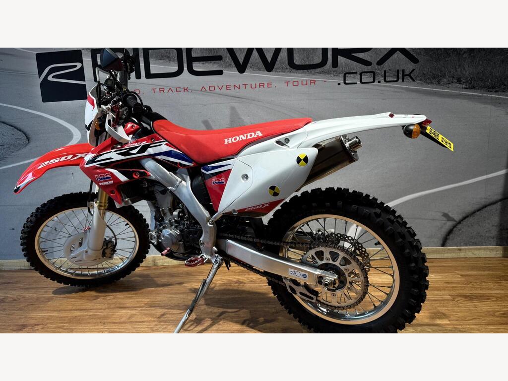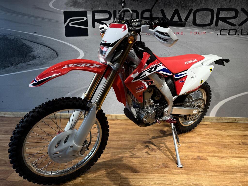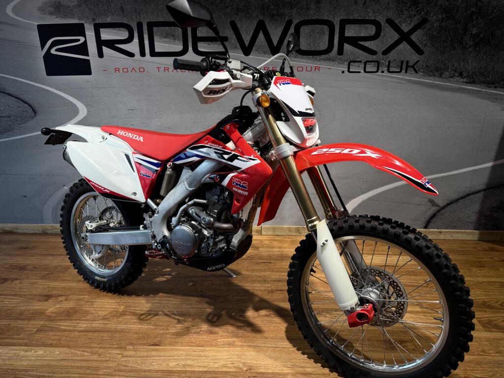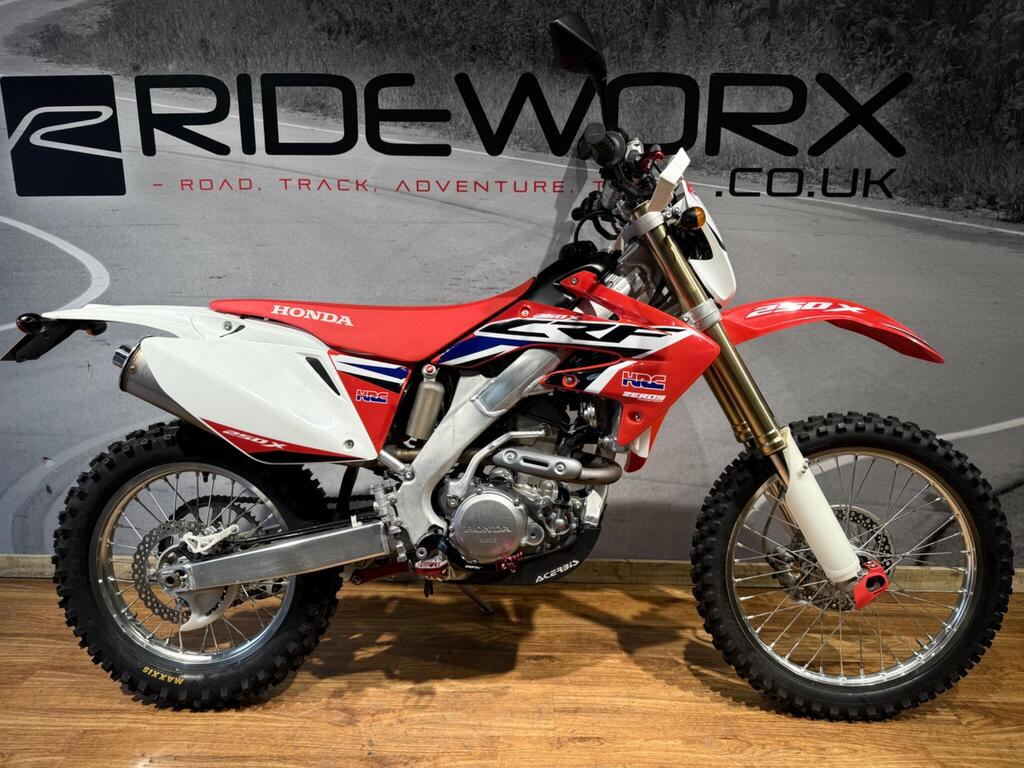 Hardly used! this CRF 250 Enduro Has never seen a hard days work! with 453 miles its almost new! sat in the back of the garage most its life and now fitted with new tires front and rear she is ready to give you a summer of fun! proper enduro bike capable of tackling any green lane or enduro track you point it at! Road registered, full lighting kit fitted. 1 Year MOT included! call us for more information!