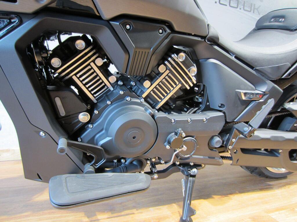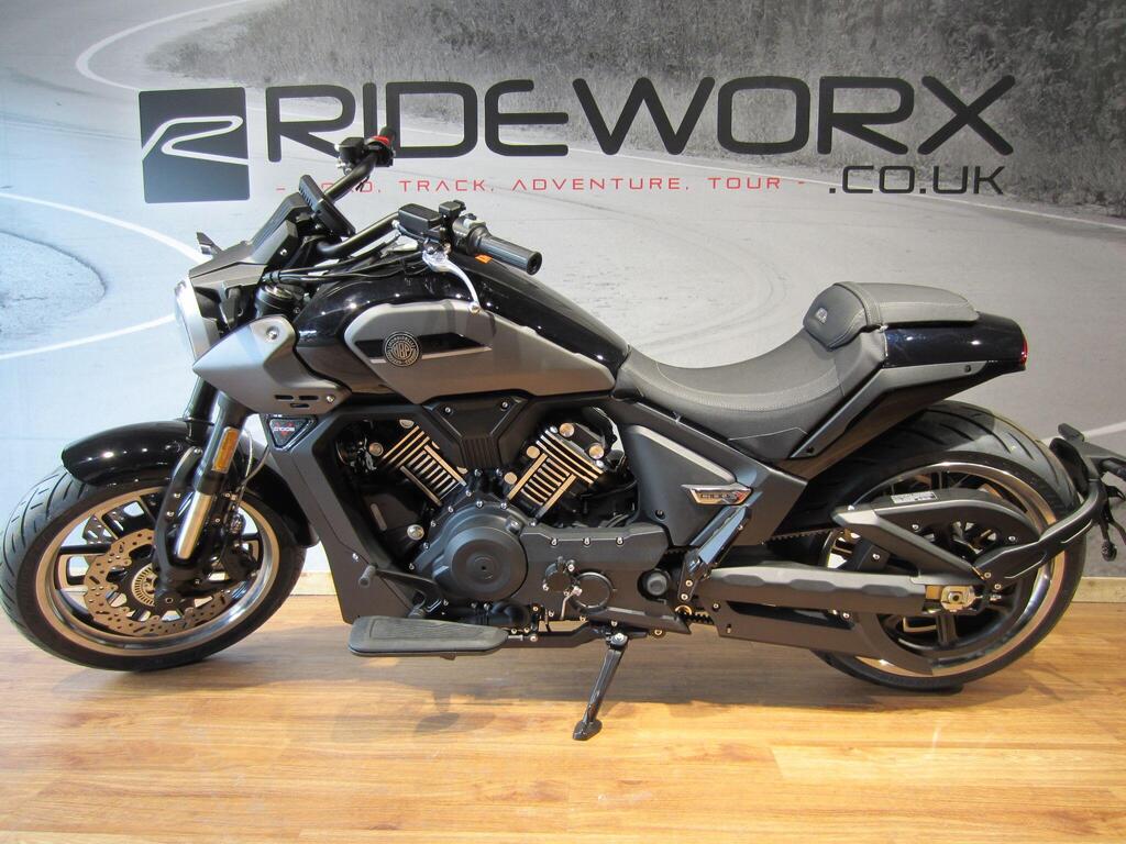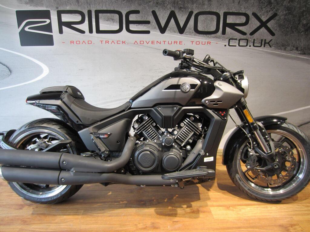 NEW FOR 2025! Unleash the power of the 997cc V-twin engine with two cylinders positioned at 80°. Experience unmatched performance and thrilling acceleration on every ride. The passenger seat serves as both a plush perch for a partner and a handy backrest for added comfort while riding solo. The relaxed riding position complements the C1002V’s laid-back silhouette. Ultra-wide rear tire transfers power to the pavement and provides excellent confidence out on the road. The central headlamp features four individual lights in a circular design that offers a classic look and improved visibility. Cruise control, digital TFT dashboard, dual riding modes, and USB charging spot offer ultimate convenience and control. Tuned exhaust system produces a deep, resonant sound, enhancing the riding experience and reflecting the bike's power. FANTASTIC POWER CRUISER! IN STOCK NOW AT RIDEWORX!