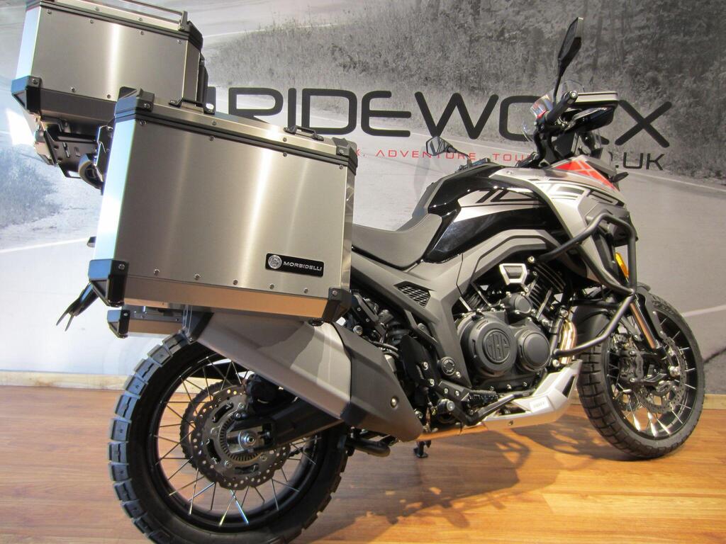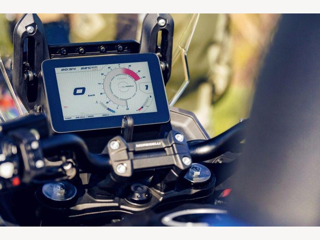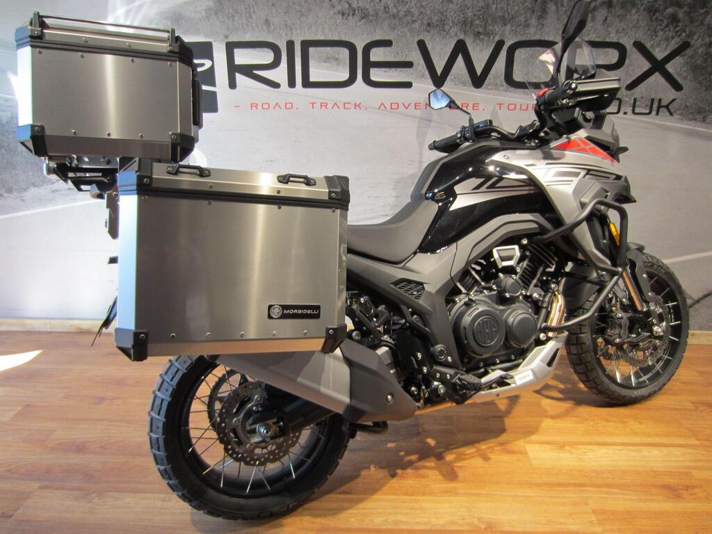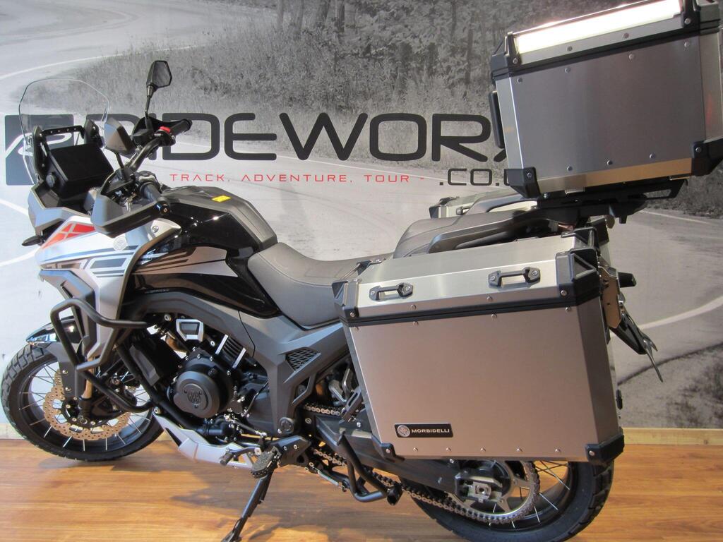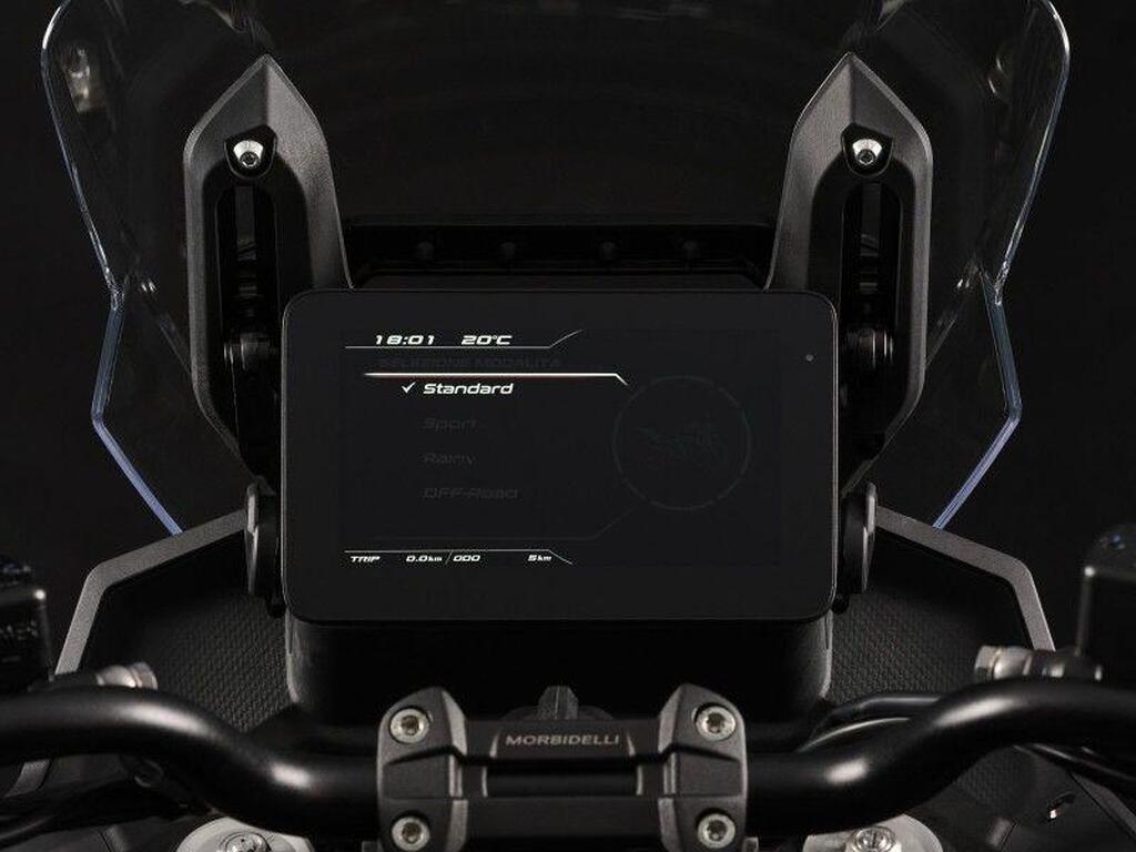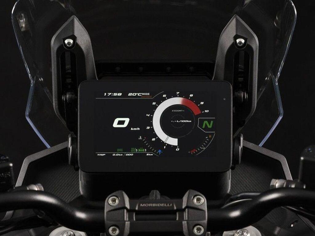 The ultimate V-Twin ADV Tourer, an all-rounder designed for adventure enthusiasts and everyday commuters alike. Engineered for the long run this motorcycle promises a perfect blend of performance, all day comfort and cutting-edge innovation. - A HUGELY SPECED adventure bike with a fantastic price tag! INTELLIGENT RIDE MODES, COMFORT HEATED SEATS, HEATED GRIPS, CRUISE CONTROL, ABS PRO BRAKES, EXCLUSIVE 80-DEGREE V-TWIN ENGINE The T1002VX is powered by a 997 cm³ 80-degree V-Twin engine, delivering 87.2 hp at 7500 rpm and an impressive 89 N·m of torque at Only 5250 rpm. This configuration not only provides smooth, progressive acceleration but also ensures optimal performance that is ideal for challenging terrains and long-distance rides offering the perfect balance between power and control on every ride. ALUMINIUM BELLY PAN, HEIGHT ADJUSTABLE SCREEN, MORBIDELLI CONNECT: SMART CONNECTIVITY FOR THE MODERN RIDER - With the Morbidelli Connect system, riders can stay connected to their motorcycle via a mobile app. This system uses 4G connectivity to access real-time data, such as the bike’s location, engine performance, and ride statistics. It also includes security alerts for unauthorized movement and the ability to share routes with other Morbidelli Connect users, ensuring a safer and more connected riding experience. Morbidelli T1002VX HEIGHT ADJUSTABLE SCREEN - The screen is adjustable for height and can easily done via 2 over center catches, mounted to the frame on the rear of the screen. FREE FULL LUGGAGE INCLUDED FOR A LIMITED TIME! - This bike simply has too much spec to list and represents fantastic value! IN STOCK NOW! call in the showroom to see it for your self !
