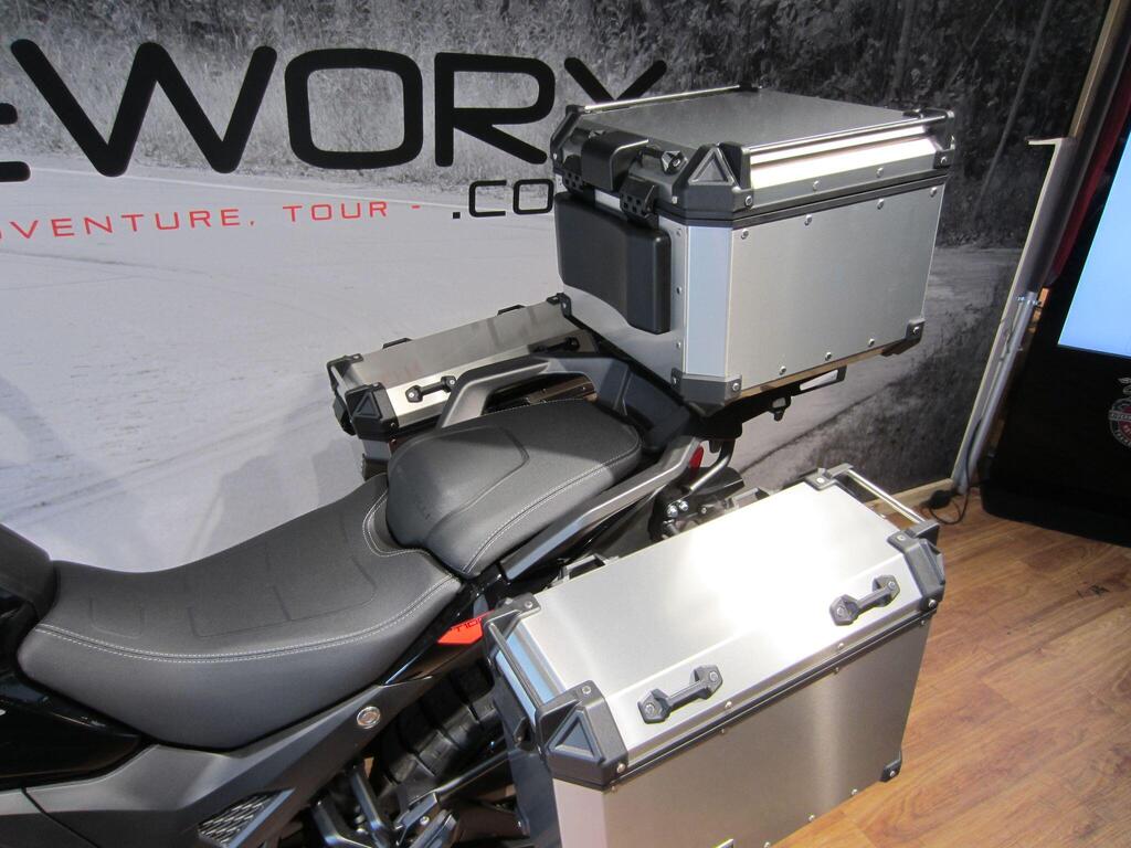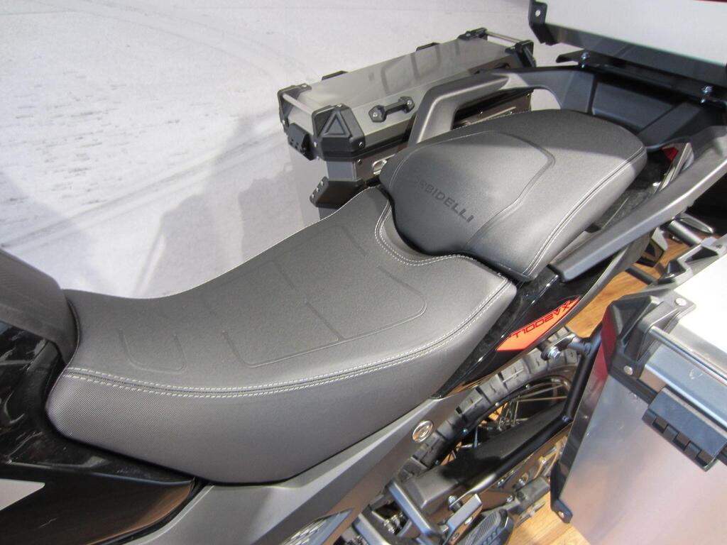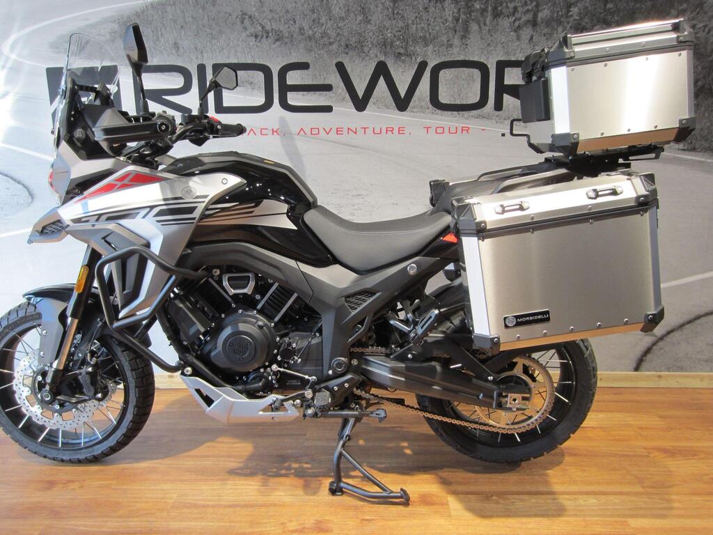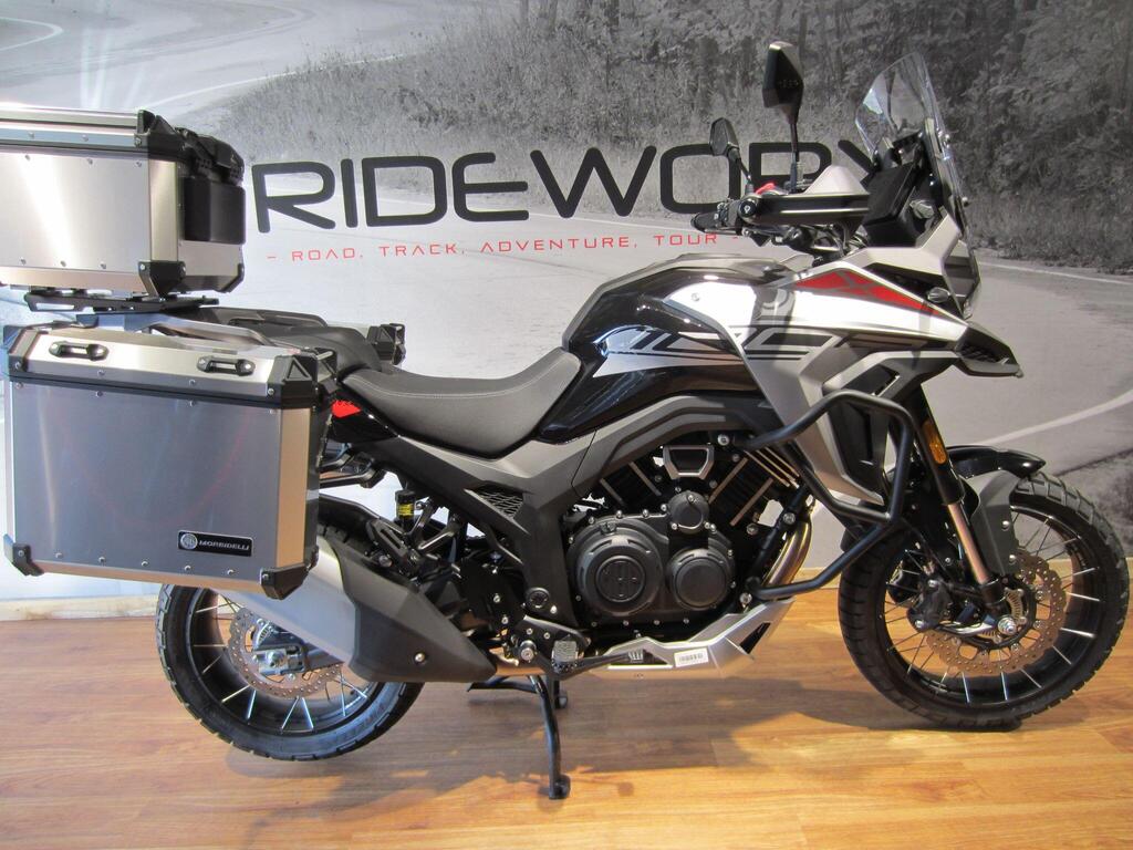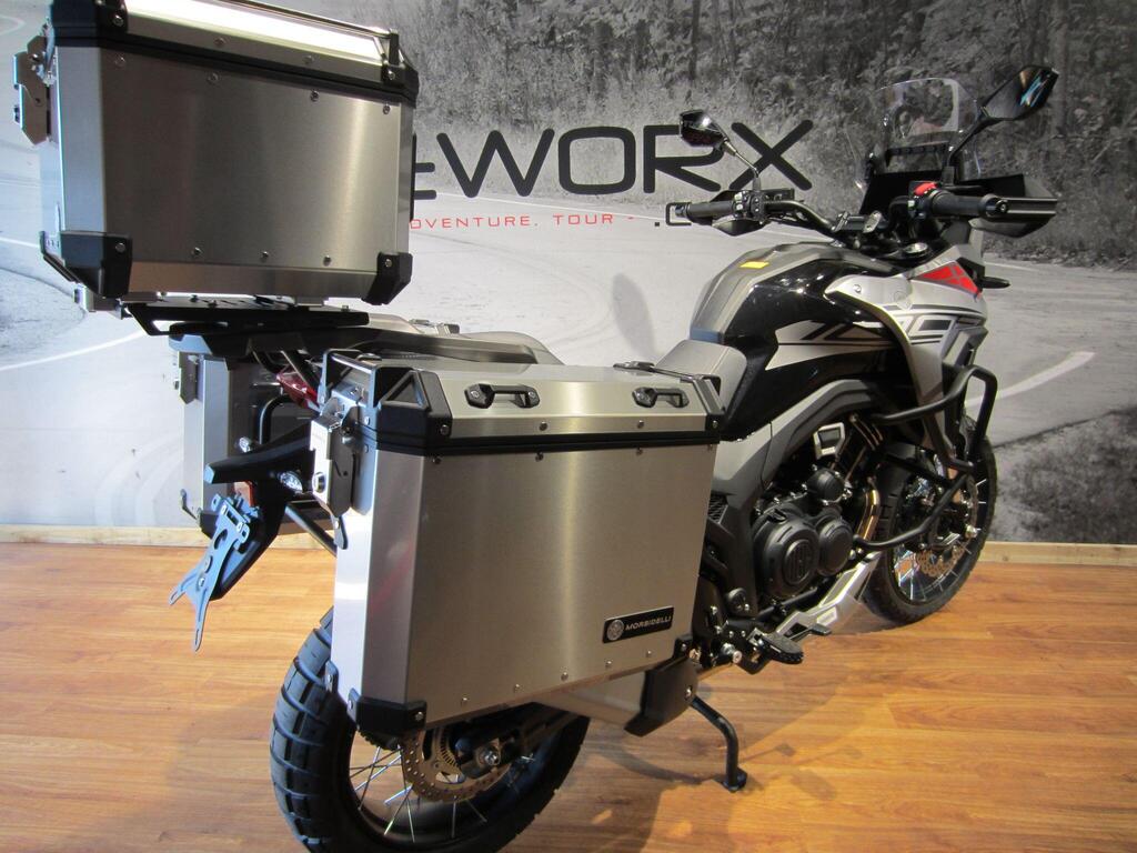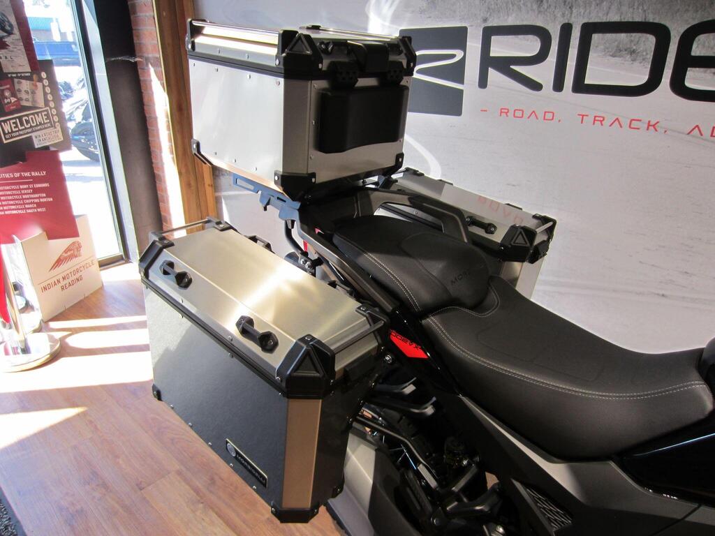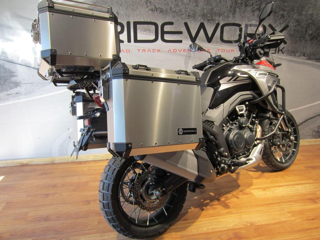 The ultimate V-Twin ADV Tourer, an all-rounder designed for adventure enthusiasts and everyday commuters alike. Engineered for the long run this motorcycle promises a perfect blend of performance, all day comfort and cutting-edge innovation. - A HUGELY SPECED adventure bike with a fantastic price tag! INTELLIGENT RIDE MODES, COMFORT HEATED SEATS, HEATED GRIPS, CRUISE CONTROL, ABS PRO BRAKES, EXCLUSIVE 80-DEGREE V-TWIN ENGINE The T1002VX is powered by a 997 cm³ 80-degree V-Twin engine, delivering 87.2 hp at 7500 rpm and an impressive 89 N·m of torque at Only 5250 rpm. This configuration not only provides smooth, progressive acceleration but also ensures optimal performance that is ideal for challenging terrains and long-distance rides offering the perfect balance between power and control on every ride. ALUMINIUM BELLY PAN, HEIGHT ADJUSTABLE SCREEN, MORBIDELLI CONNECT: SMART CONNECTIVITY FOR THE MODERN RIDER - With the Morbidelli Connect system, riders can stay connected to their motorcycle via a mobile app. This system uses 4G connectivity to access real-time data, such as the bike’s location, engine performance, and ride statistics. It also includes security alerts for unauthorized movement and the ability to share routes with other Morbidelli Connect users, ensuring a safer and more connected riding experience. Morbidelli T1002VX HEIGHT ADJUSTABLE SCREEN - The screen is adjustable for height and can easily done via 2 over center catches, mounted to the frame on the rear of the screen. FREE FULL LUGGAGE INCLUDED FOR A LIMITED TIME! - This bike simply has too much spec to list and represents fantastic value! IN STOCK NOW! call in the showroom to see it for your self !