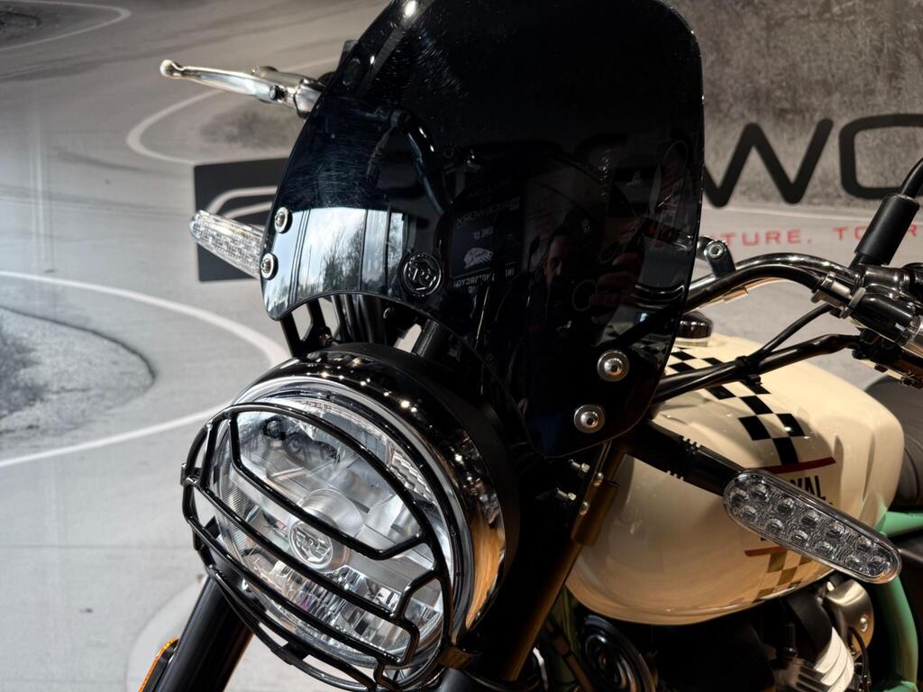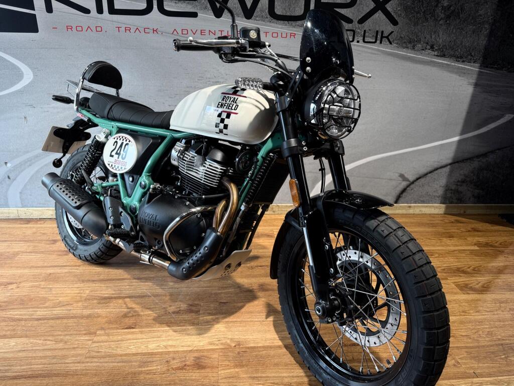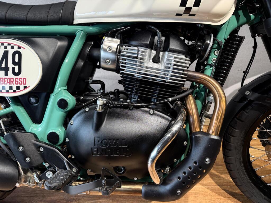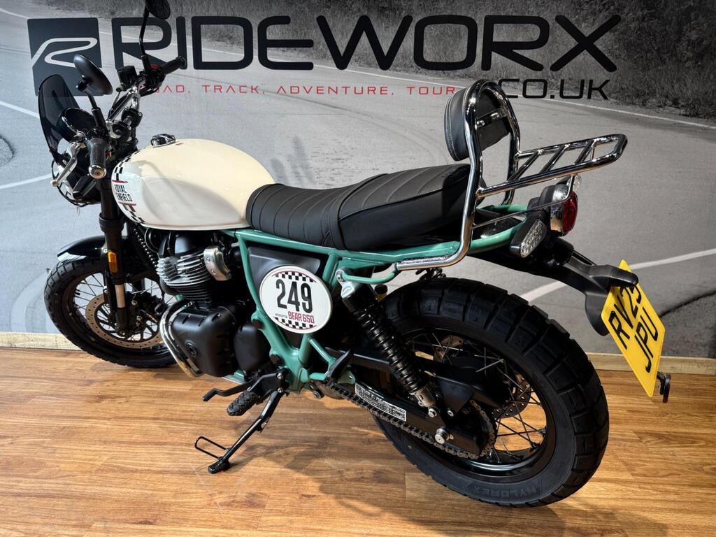Absolutely stunning Royal Enfield BEAR 650! with only 580 Miles!! 1 owner! Immaculate condition with Pillion back rest, fly screen, headlight grill. A true classic scrambler inspired bike with modern tech and safety features. The green frame and race inspired tank and graphics really set the bike apart from other models. Great Value bike, in stock and ready to go!