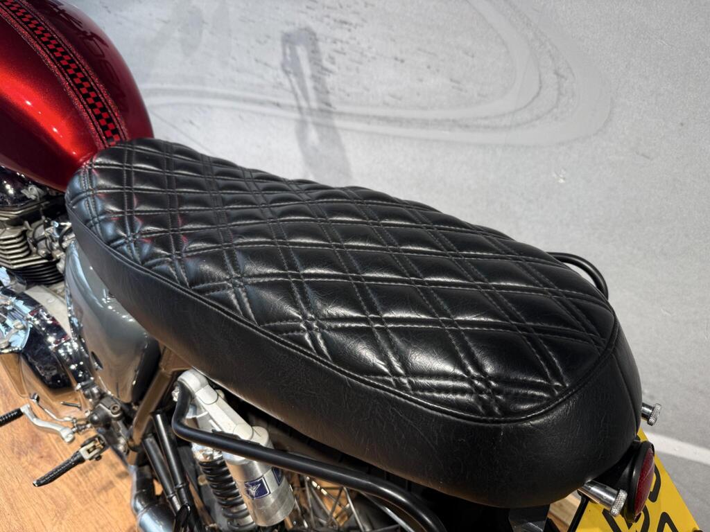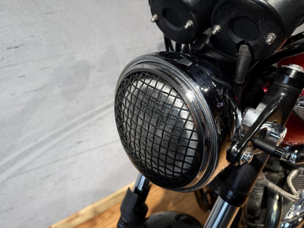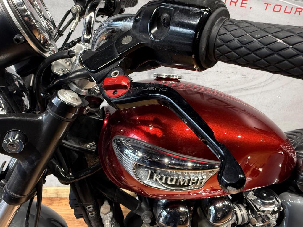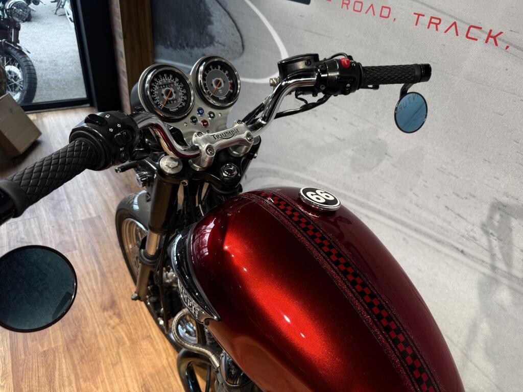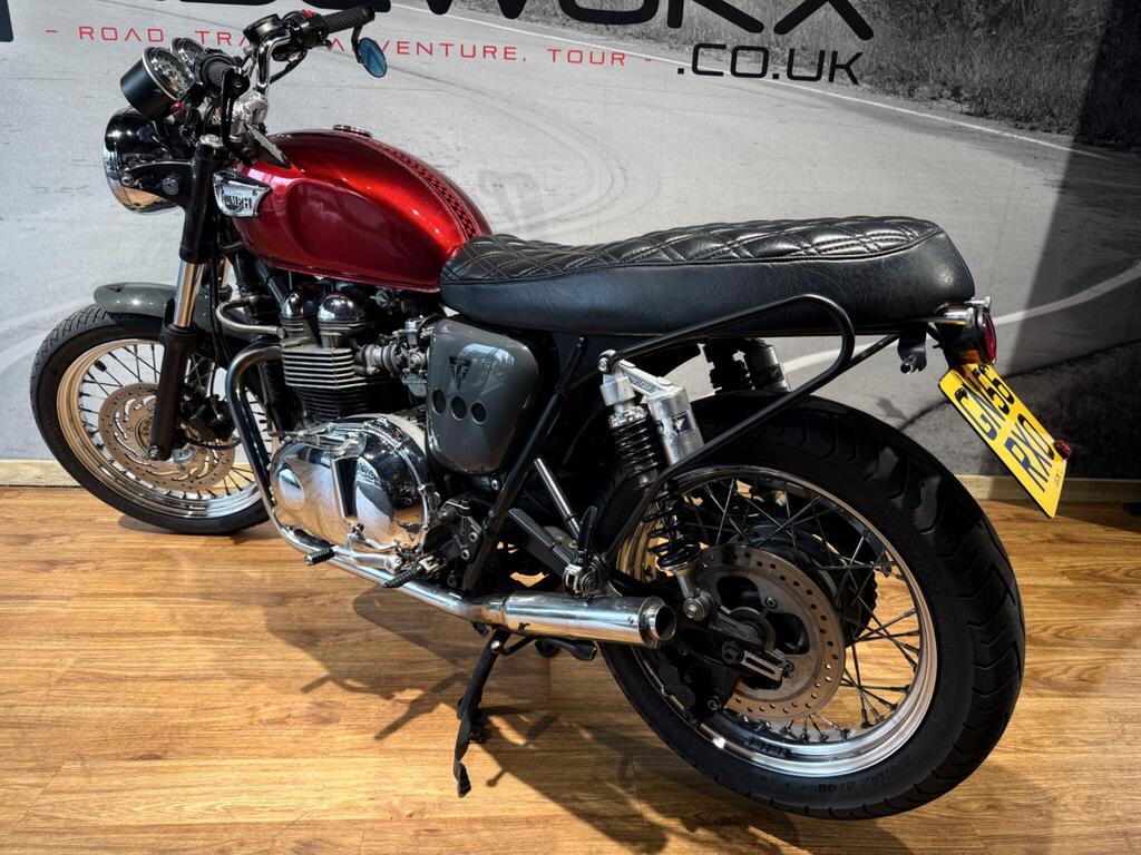Nice Bright modded Bonnyville 865 T100. Painted in great metallic red, with polished engine cases, custom seat, LED light and tiny LED indicators, rear side rack to take throw over bags, and great sounding twin exit pipes. lovely condition with 34500 miles and lots of service bills and history. A great little bike for the summer that will turn heads and be pleasure to take on those sunny morning blasts!