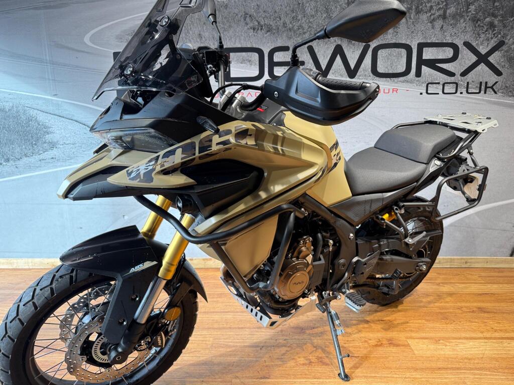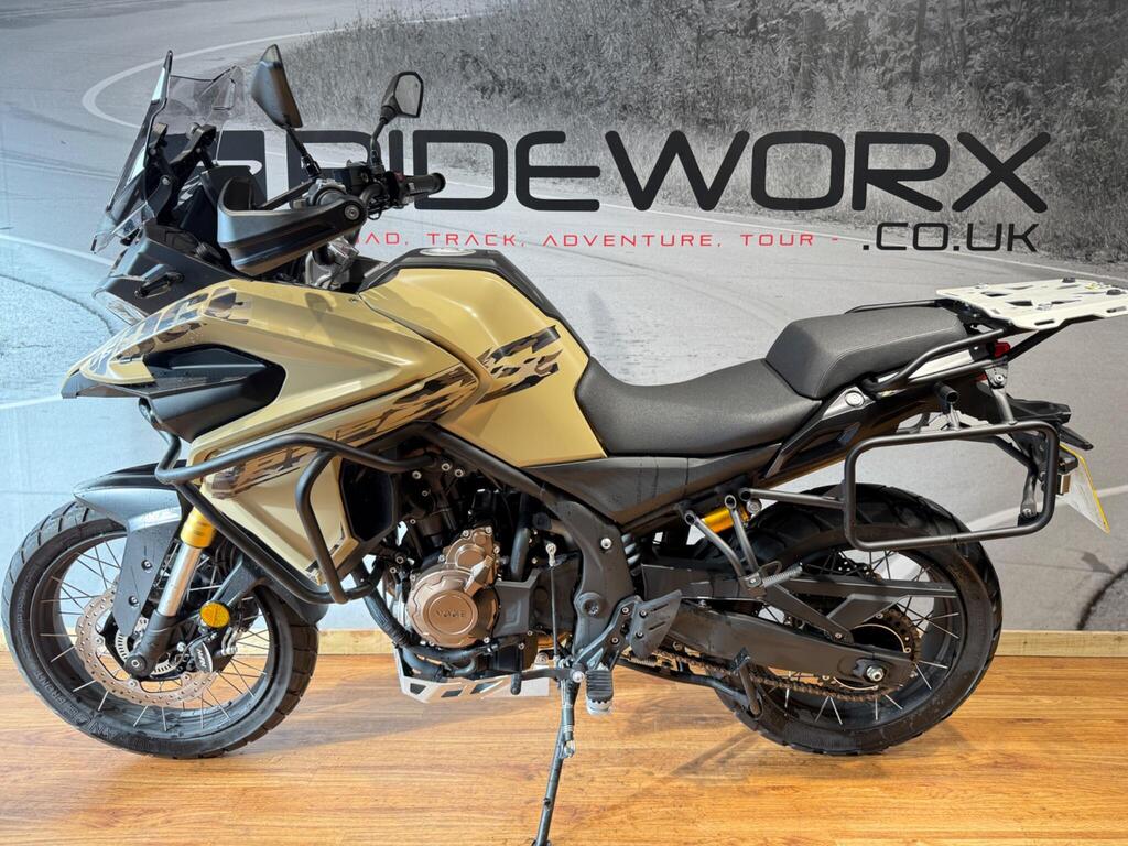 ONLY 359 MILES FROM NEW, EX DEMO, NOW AVAILABLE! The hugely popular and extremely well spec'd middleweight adventure bike that is VOGE DS625X !! Dripping in spec, exceptional build quality and price that doesn't break the bank, its clear to see why these sell out fast! The new 600 ENGINE, Now in its 3rd incarnation, the most Powerful KEL 600 engine yet! Larger displacement: +87cc, now 581cc produces stronger and more robust power, now with a 270 degree firing order for increased torque and reduced vibration. Torque increase of +28.1% and Power increase of +34.3% Max Power is now 47 kW (63.9 Bhp) @ 9,000 rpm & Max Torque is 57 Nm (42 ft-lb) @ 6,500 rpm 6 speed gearbox with slipper clutch and a super light action clutch lever! The standard spec includes (but not limited to)FULL LED LIGHTING, FULL COLOUR TFT DASH, BACK LIT SWITCHGEAR, ADJUSTABLE KYB SUSPENSION, NISSIN BRAKES WITH DUAL CHANNEL ABS, COMFORT SEAT, SAFETY - 1080p DASHCAM, ADJUSTABLE SCREEN, TUBELESS SPOKED WHEELS, SIDE IMPACT ENGINE BARS! ADD A FULL LUGGAGE KIT FOR JUST £699 (normal retail price £1299) available in 2 colours - black night and desert storm. IN STOCK NOW! FINANCE AVAILABLE !!