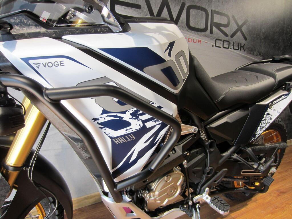 Ready for Any Challenge The chassis has been designed to excel in all conditions. Equipped with fully adjustable KYB suspension, tubeless cross-spoke wheels (21" front and 18" rear), and Pirelli Scorpion Rally STR tyres, the VOGE DS800X Rally offers impeccable, sure footed performance both on and off road.